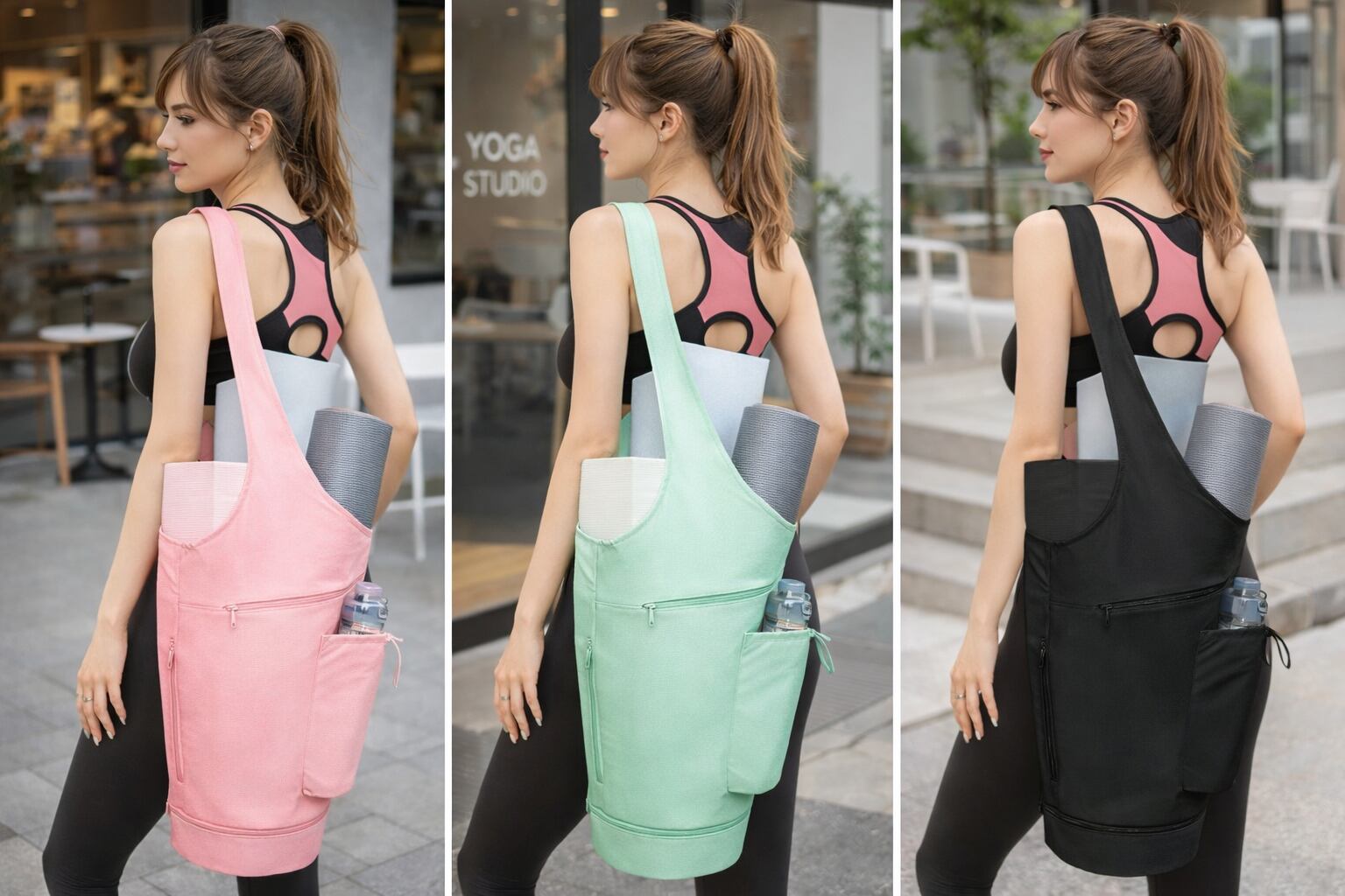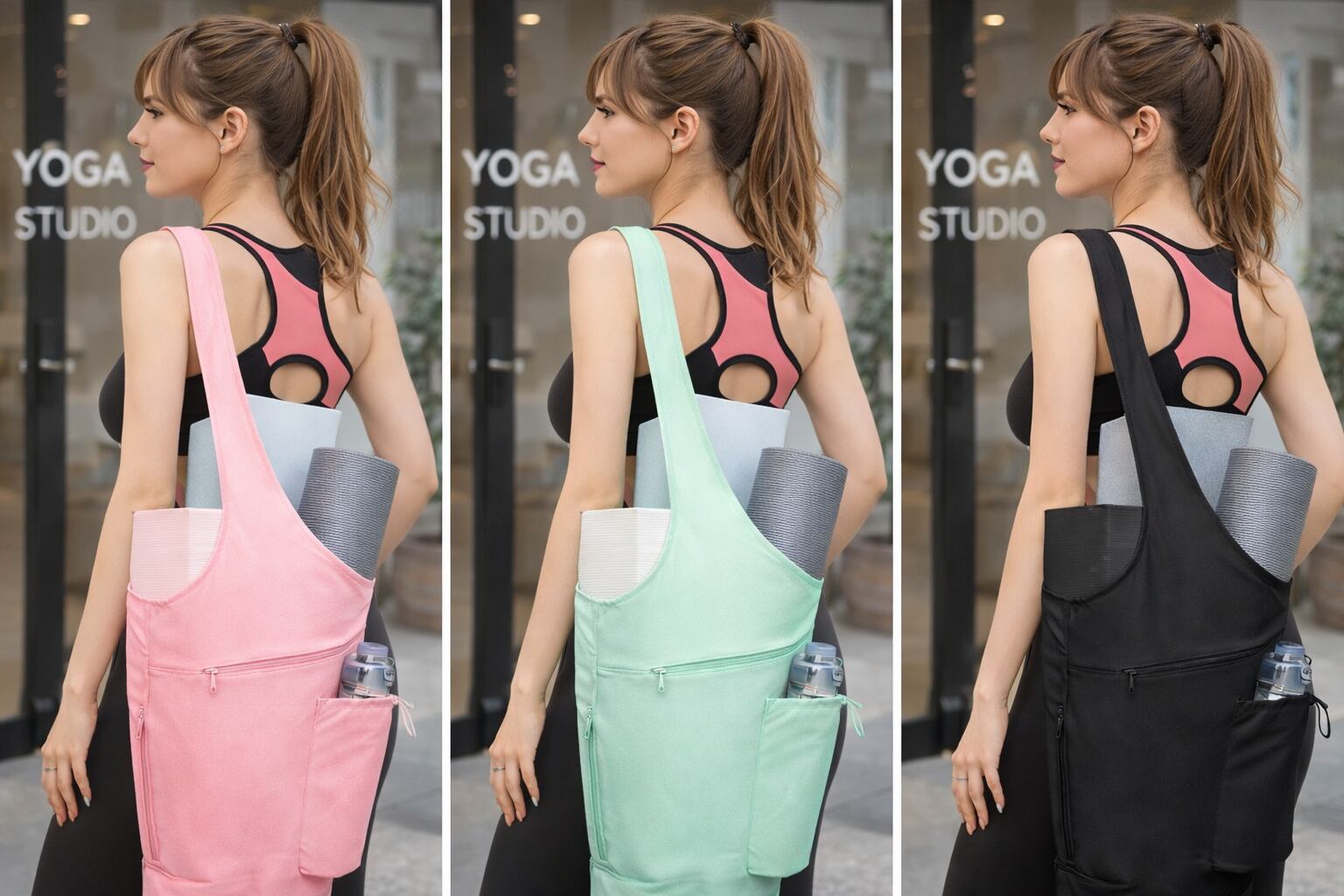 豊富なポケットで多収納!縦型ヨガマットバッグ
